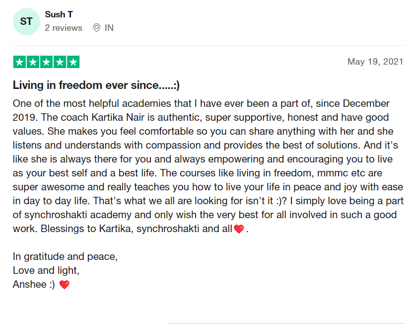 Kartika Nair is an International digital coach, trainer, and founder of the personal development brand "Synchro shakti"